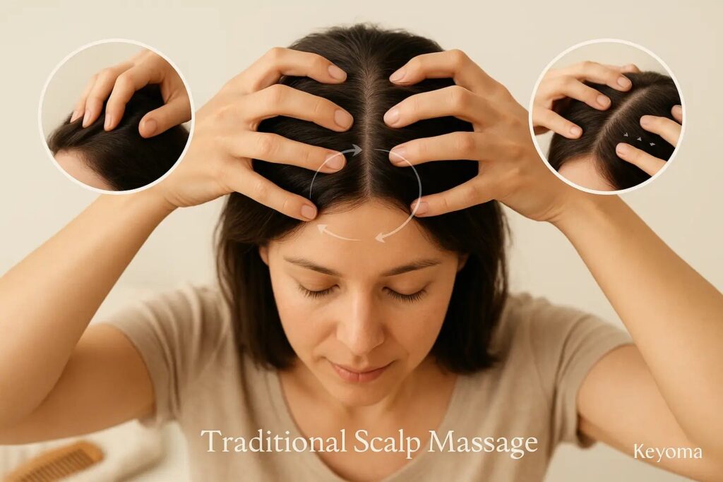 How to do it: Use fingertips (or a silicone scalp massager) in small circular motions with light-to-medium pressure. Spend 3-5 minutes daily, either dry or during shampooing/conditioning. You can do it while watching TV or before bed.